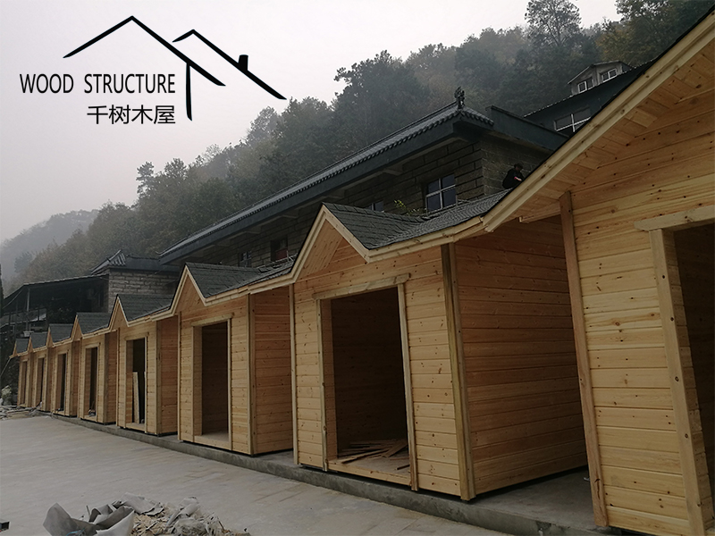 風景名勝區(qū)的復式辦公樓木屋和20個售賣小木屋由河南千樹木業(yè)有限公司(以下簡稱千樹木屋)設(shè)計并建造。
