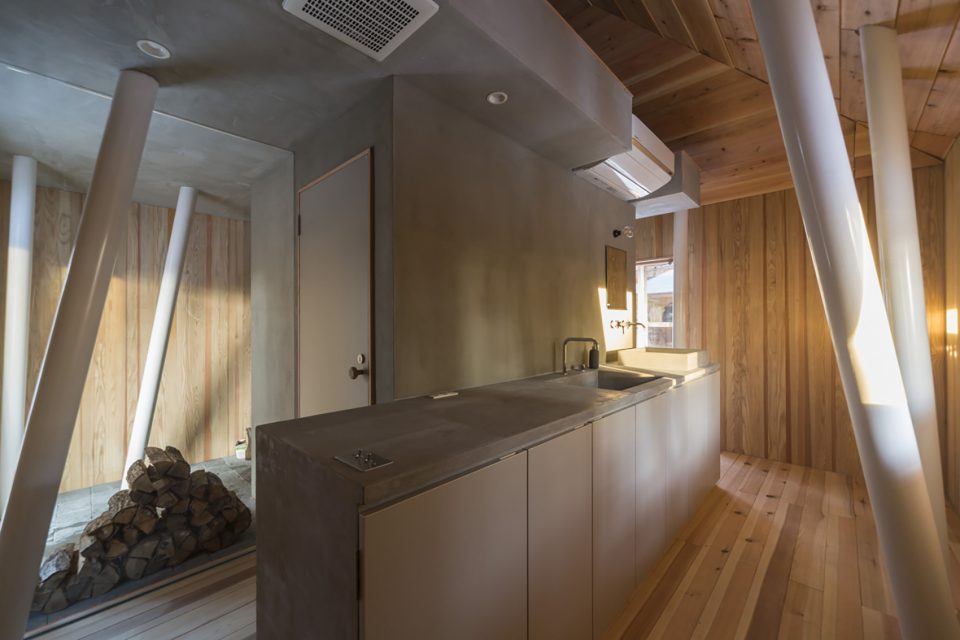 房屋的建造使用了120棵年齡為80-90歲、直徑約40厘米的大樹,沒有經(jīng)過任何特殊處理,也沒有刻意將木材切割至標準尺寸,這使得木材完全地保持了其原本的狀態(tài)。與遵照認為規(guī)定的現(xiàn)代社會不同,“一年住宅”完全順應(yīng)了自然。通常情況下,人們不會完整地用光一整棵樹,但本項目卻以靈活的建造方式實現(xiàn)了這一點。
