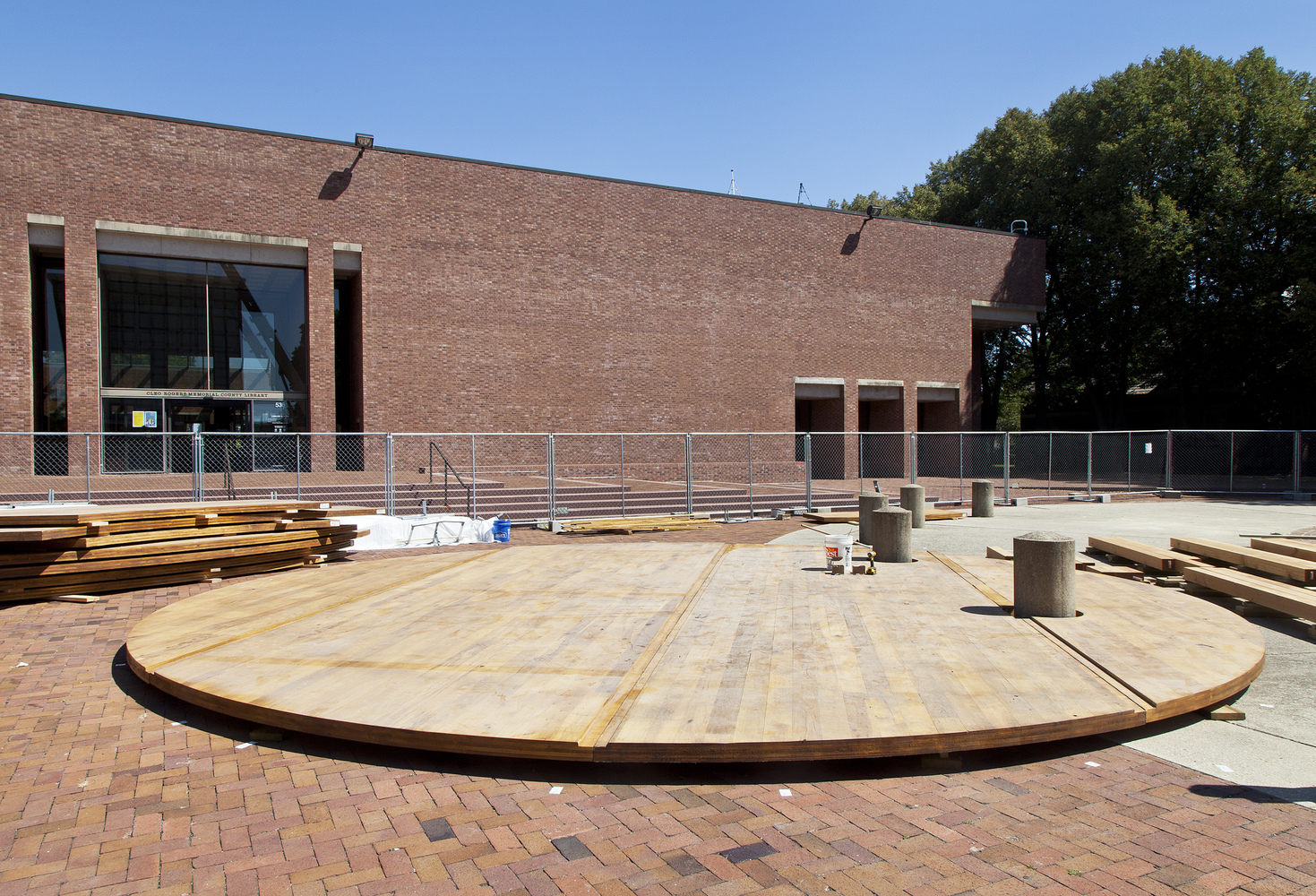 IKD給Cleo Rogers紀(jì)念圖書(shū)館廣場(chǎng)的設(shè)計(jì)方案,題目是對(duì)話基座 (Conversation Plinth),其目的是為了向 J Irwin Miller 致敬并慶祝哥倫布社區(qū)。它的形式是受 Miller House 談話的正廳的啟發(fā), 同時(shí)他的“基座”抬高并強(qiáng)調(diào)了場(chǎng)地周?chē)闹匾貥?biāo)建筑-貝聿銘設(shè)計(jì)的圖書(shū)館,由薩里寧設(shè)計(jì)的第一個(gè)基督教堂,和亨利.摩爾設(shè)計(jì)的 Large Arch。