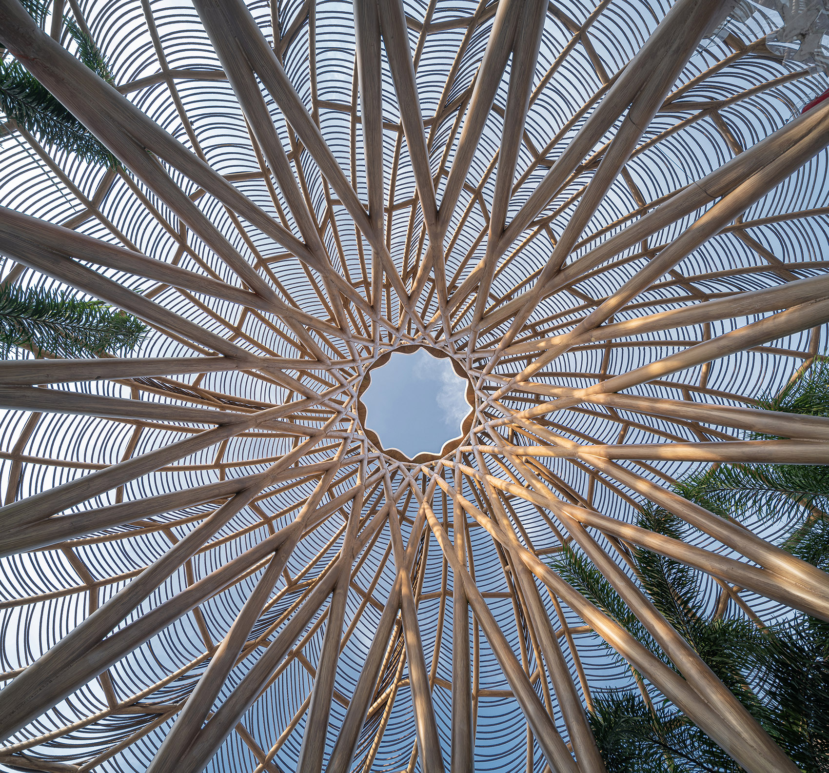 營造冥想與靜心思考的核心空間,自下而上、內(nèi)重外輕的視線向上牽引,是本設(shè)計場所精神性營造的核心用意。置身其間,看著浮云流動,讓人忘卻外部世界的喧囂,聚焦于眼前純凈的視界。
